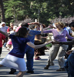 In August of 1996, the vision of ‘Lindy in the Park’ (or LitP, for short) was born, as Chad Kubo and Ken Watanabe believed in offering the public the ultimate swing dance party for free. In the San Francisco region, it is LitP that has become the longest-running swing dance “hot spot” in town. Dancers of all ages and levels gather in the park to enjoy the company of familiar faces and new acquaintances.